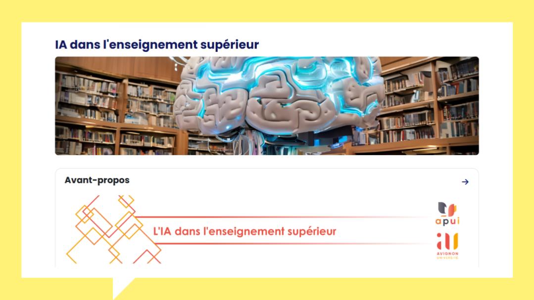 Avignon Université, via la mission APUI, propose deux cours en ligne, l’un à destination des enseignants et l’autre des étudiants, pour mieux comprendre l’IA et ses usages dans l’enseignement supérieur.