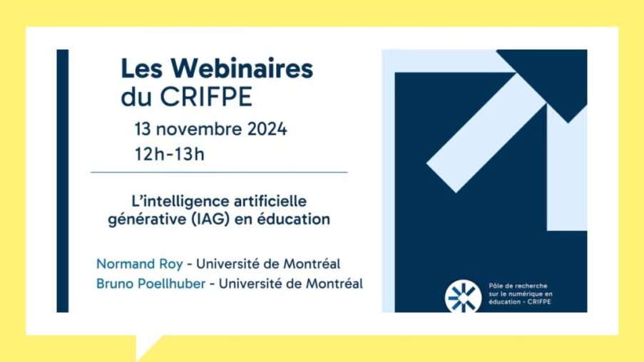 En avril 2023, un premier webinaire avait été proposé sur les potentialités de l’intelligence artificielle (IA) en éducation. Depuis, de nombreux documents ont été publiés (CIQ, 2024 ; CSÉ, 2024 ; UNESCO, 2024), suscitant réflexions et questionnements parmi les experts et les milieux scolaires, tandis que les systèmes d’IA générative continuent d’évoluer. Lors de ce webinaire, nous aborderons dans un premier temps les évolutions de l’IA générative au cours de la dernière année, en survolant également les enjeux éthiques et légaux jugés cruciaux. En deuxième partie, nous explorerons des usages concrets de l’IA, notamment les tuteurs intelligents, avec Bruno Poellhuber, ainsi que des pistes de développement pour l’avenir.